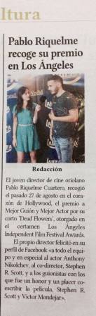El trabajo dirigido por el oriolano Pablo Riquelme y el ilicitano Stephen R. Scott obtiene los galardones al mejor guion y al mejor actor en Los Ángeles Independent
