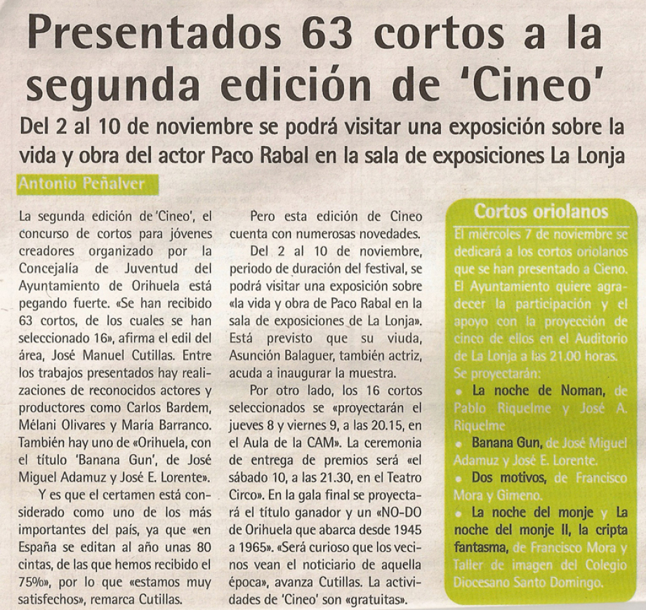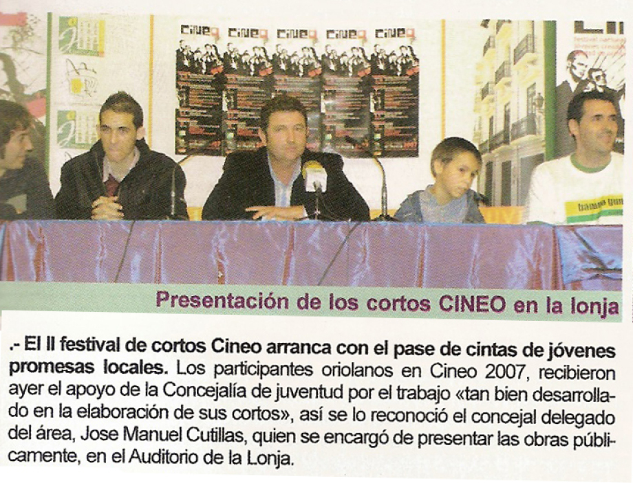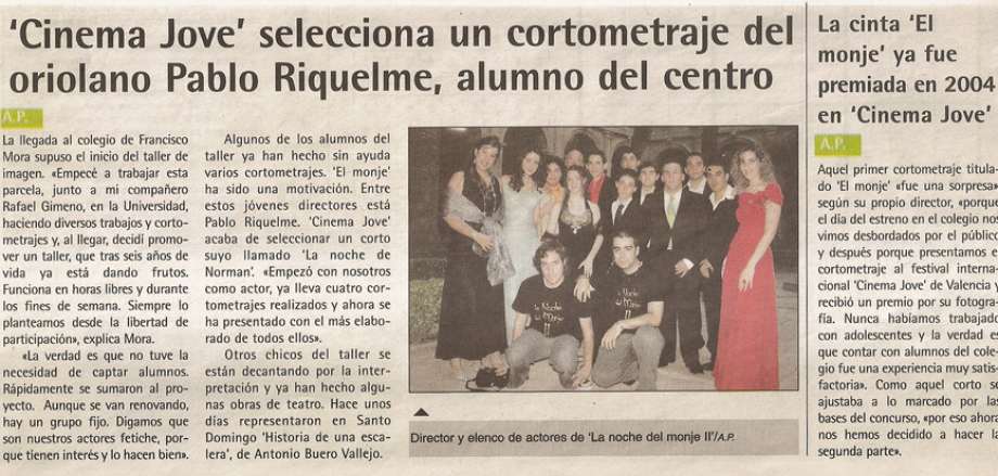 "CINEMA JOVE" selecciona un corotmetraje del oriolano Pablo Riquelme, alumno del centro